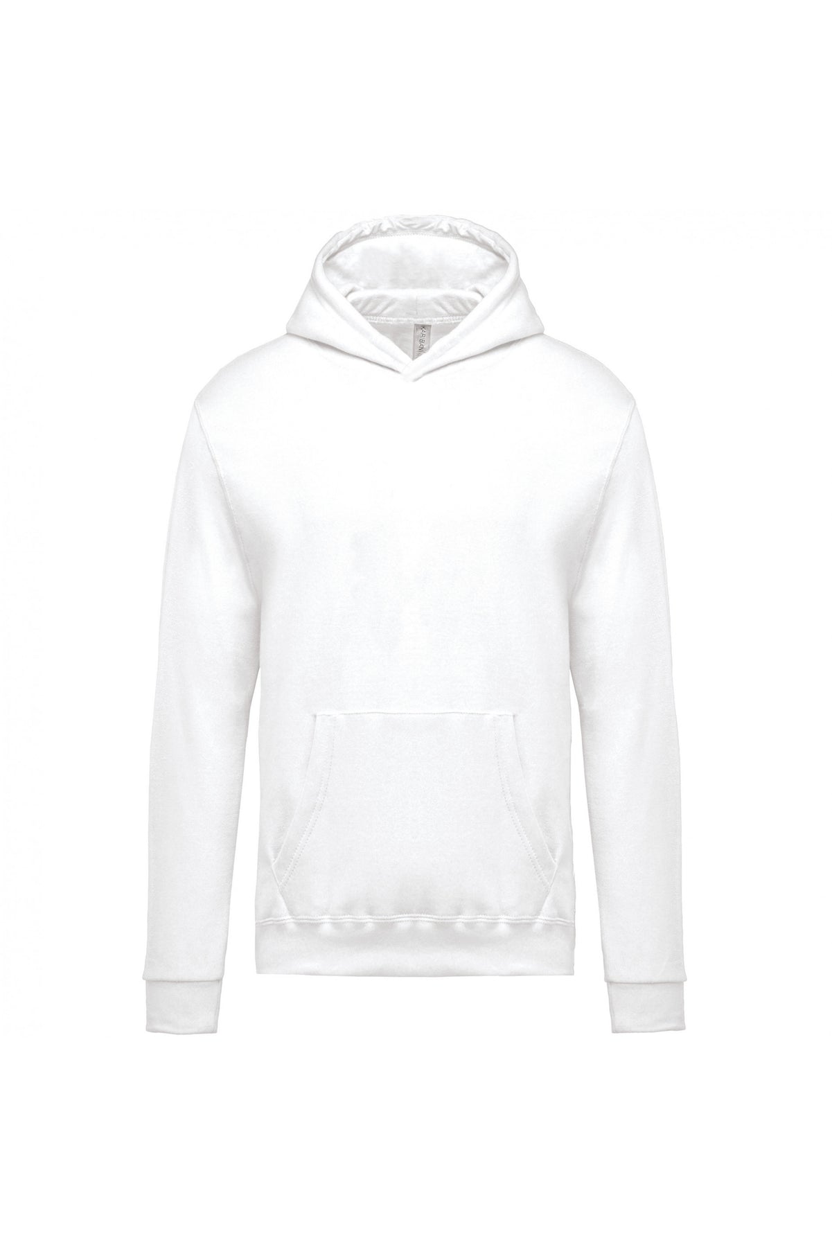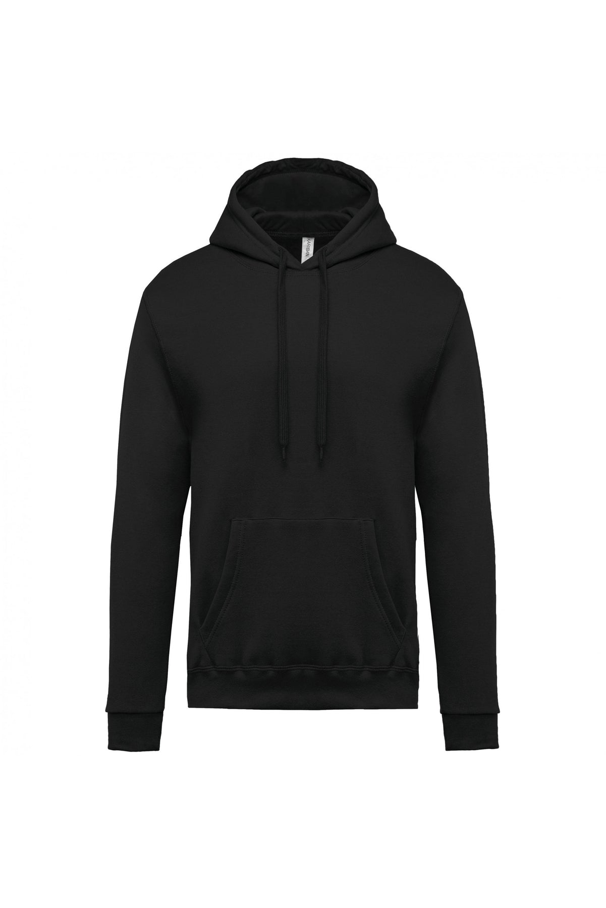 80% cotone / 20% poliestere (Olive camouflage 70% cotone/30% poliestere). Felpa garzata. Maniche a giro. Cappuccio foderato con coulisse tono su tono. Tasche a canguro. Fondo manica e fondo capo a costine.